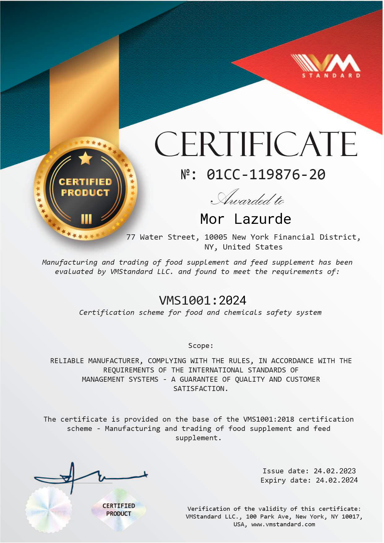 يعمل Mor Lazurde على تطبيع الأوعية الدموية وحمايتها من ارتفاع ضغط الدم الضار.